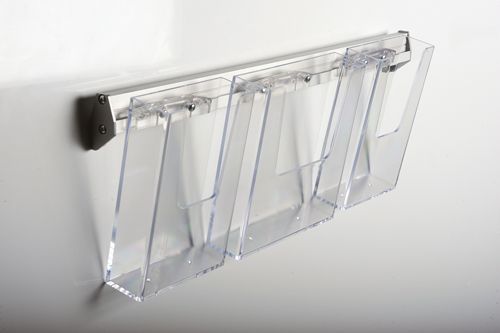 Brochureholder. M65*3. T/væg. SILVER/KLAR