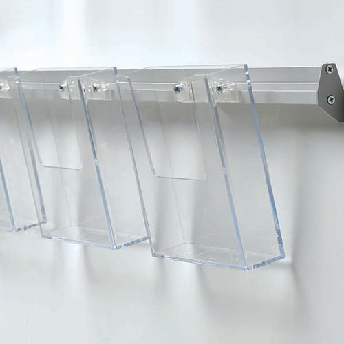 Enkelt vægskinne med holder til akryl brochureholdere.
