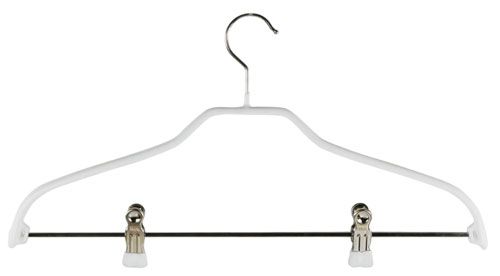 Gummibelagt hvid bøjle med buksestang og klemmer samt drejelig krog.
